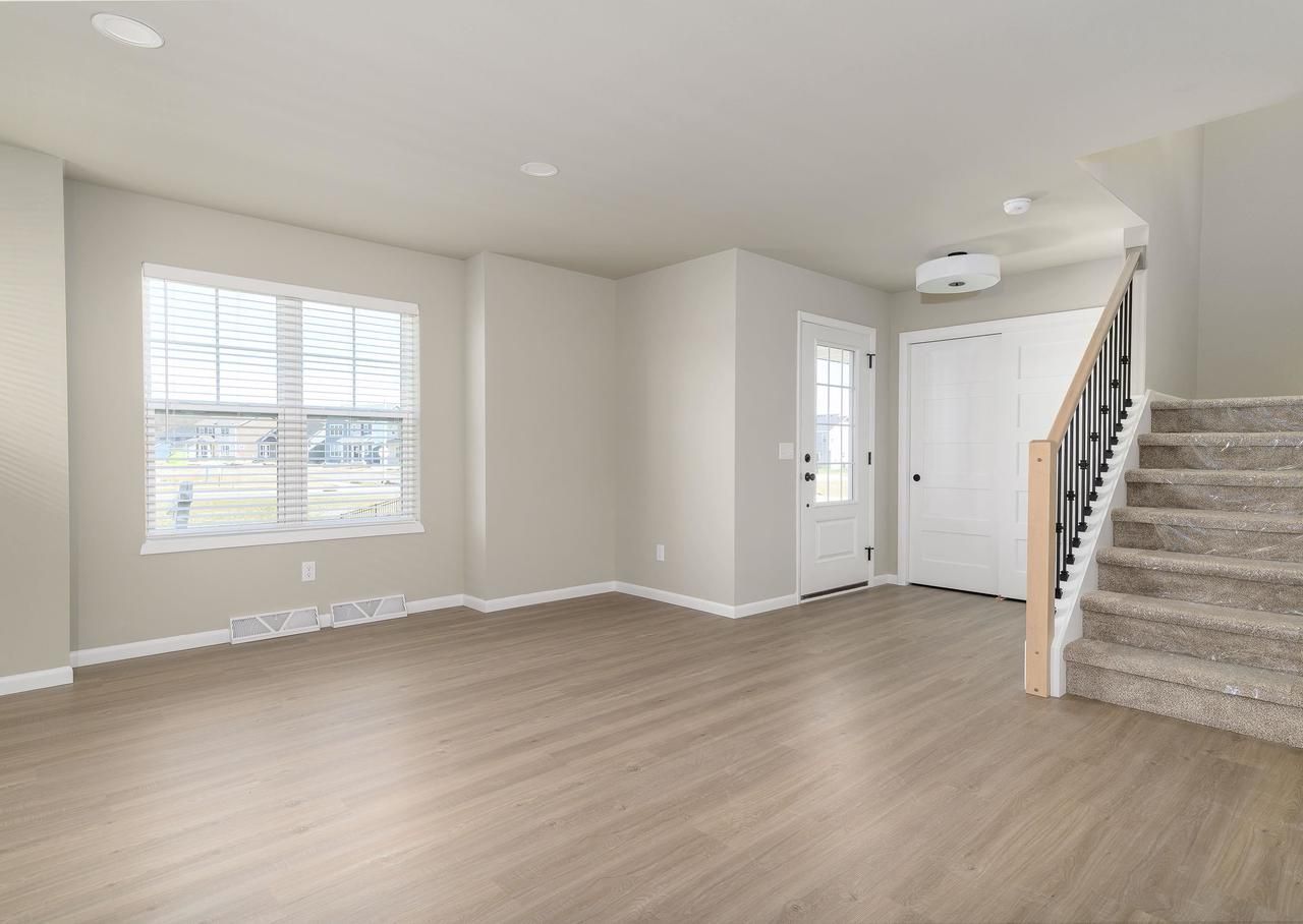 This Emerson home features a thoughtfully designed, open-concept layout ideal for modern living. Offering 3 bedrooms, 2.5 baths, and a 2-car garage, this home showcases locally made, custom Auburn Ridge cabinetry, doors, and trim crafted to last. The stylish kitchen includes a center island, quartz countertops, and quality finishes from trusted brands like Kohler, Moen, and Shaw. Durable luxury vinyl plank flooring enhances main living areas, while painted solid-core doors provide superior sound control. Designer lighting curated from Kichler and Visual Comfort & Co. adds a polished touch. Smart Home+ technology with integrated lighting control brings everyday convenience. Enjoy added peace of mind with a one-year warranty.