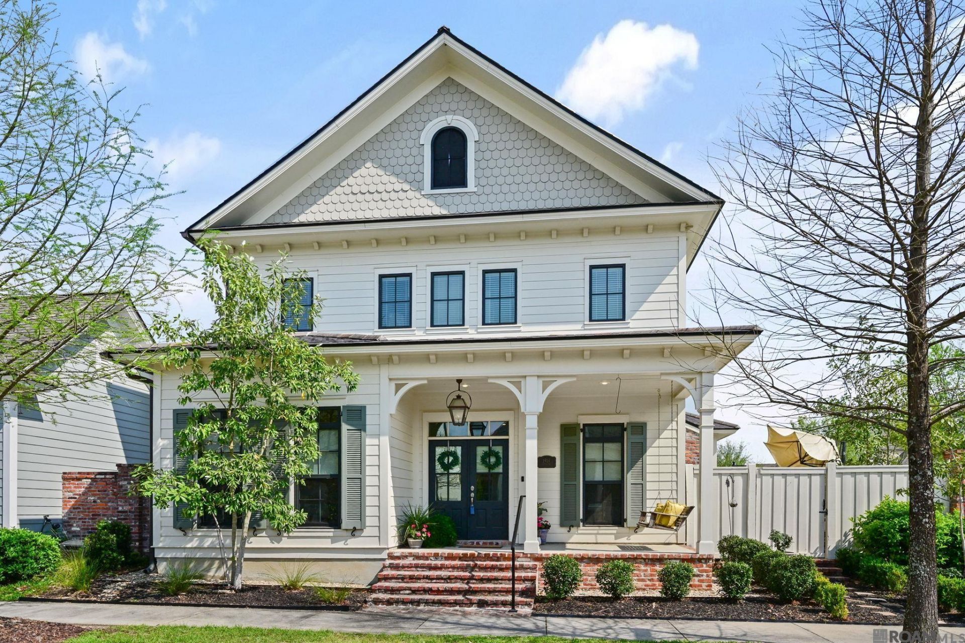 Charming two-story cottage on a highly desirable corner lot in Rouzan! This thoughtfully designed and impeccably maintained home offers 3 bedrooms, 2.5 baths, and over 1,950 square feet of living space. A bricked front porch and double front doors welcome you into the inviting open living area filled with natural light. The dining room is beautifully defined by an exposed whitewashed cypress beam and overlooks community green space. The living room features a ventless gas fireplace, wood staircase with iron balusters, and views of the private side courtyard. The gourmet kitchen is a standout with custom painted cabinetry, under-cabinet lighting, a large center island with single-basin farmhouse sink, pendant lighting, 3 cm ash gray quartz countertops, beveled marble backsplash, Wolf cooktop, and GE Café series wall oven with built-in microwave. The private primary suite is located downstairs at the rear of the home, offering a quiet retreat. The spa-like bath includes a custom tiled shower with glass enclosure, separate soaking tub, dual vanities, framed mirrors, satin nickel fixtures, and an oversized walk-in closet. Upstairs features two spacious bedrooms with walk-in closets, a full bath with dual vanities, and an open loft ideal for a second living area, office, or playroom. Additional highlights include a laundry room off the garage with built-in cabinetry, wood flooring, cast iron secondary tubs, and upgraded lighting. The side courtyard is designed for easy outdoor living with a custom patio, small green space ideal for an herb garden or pets, and a privacy fence with brick columns. 2 car garage with extra storage area. Fabulous corner lot also offers desirable guest parking. Enjoy Rouzan's community pool, clubhouse, walking trails, and green spaces, all in a prime Baton Rouge location near LSU and the Lakes.