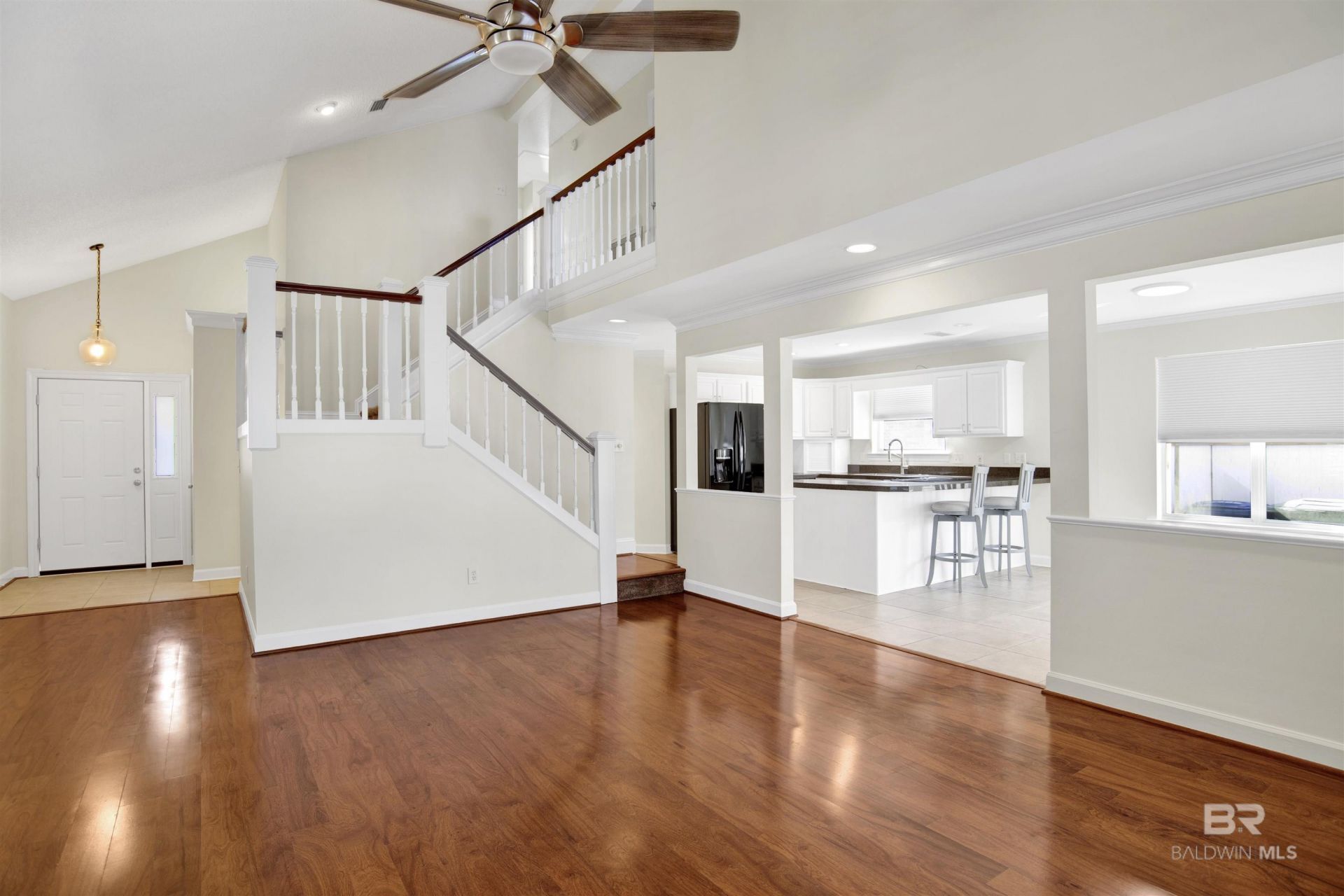 Charming two-story, well-maintained lakefront home in a coveted location. Featuring 3 bedrooms, 2.5 baths, and over 1800 square feet of living space. The home boasts new carpet, and a mix of tile and hardwood flooring throughout. Additional features include granite countertops, a new kitchen sink and faucet, crown molding, a gas log fireplace, and a tankless water heater. The views from the master bedroom, downstairs living area, and kitchen are truly special. Enjoy the screened-in back patio overlooking a stocked fishing lake, with great neighborhood amenities. Conveniently located, close to everything Foley has to offer. Buyer to verify all information during due diligence.