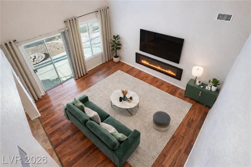 Beautiful 4-bedroom, 2.5-bath home with a 2-car garage located in a desirable gated community in North Las Vegas. Highly sought-after primary suite downstairs offers privacy and convenience. Bright entry with lots of natural light leads into an open-concept floor plan ideal for everyday living and entertaining. Flexible formal dining area can be used as a home office, game room, or additional living space. Spacious family room open to and flows seamlessly into the kitchen. Upstairs features three generously sized bedrooms, a large open loft, and a Jack-and-Jill bathroom. Backyard is perfect for gatherings with a large covered patio and ample space to relax or play, add a pool and more. Move-in ready home with a functional layout, flexible living spaces, and excellent location.