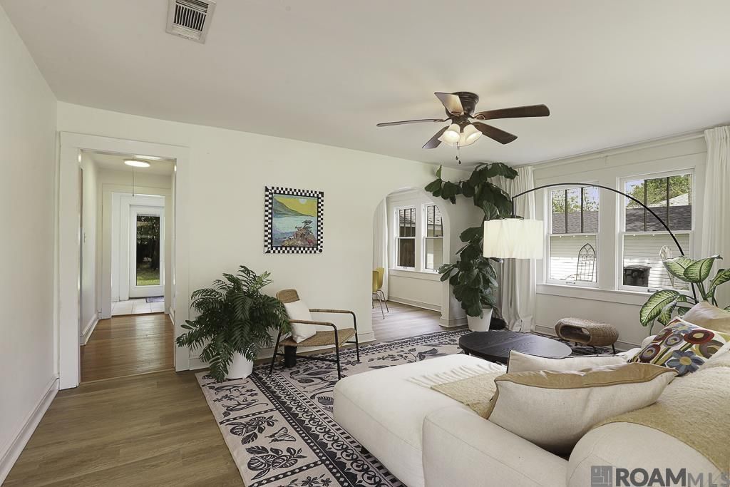 This precious cottage-style home has lots of curb appeal! It's only 1.4 miles to the LSU South Gate, and its location, off Highland Rd near Lee Drive, is also convenient to several restaurants, groceries, and shopping. One of the highlights of this 2BR, 1BA is that it's immaculate and ready to move in! It features original oak floors, vinyl, and ceramic floors. There are lots of wood windows bringing in an abundance of natural light. The Dining Room is between the Kitchen and the Living Room. The Kitchen has a gas stove (cooktop and oven), microwave, dishwasher, granite countertops, and tile backsplash. The refrigerator is included. The 2 Bedrooms have ample closet space and are separated by the nicely updated Bath with its large tile shower. The washer/dryer is included. Going outside through the double glass doors, you will enjoy the large treed rear yard with new cedar fence (2022). Also, there is a door off the Kitchen that goes to the covered walkway and then into the garage. Other amenities include a new architectural roof in 2021, and also central a/c and heat.