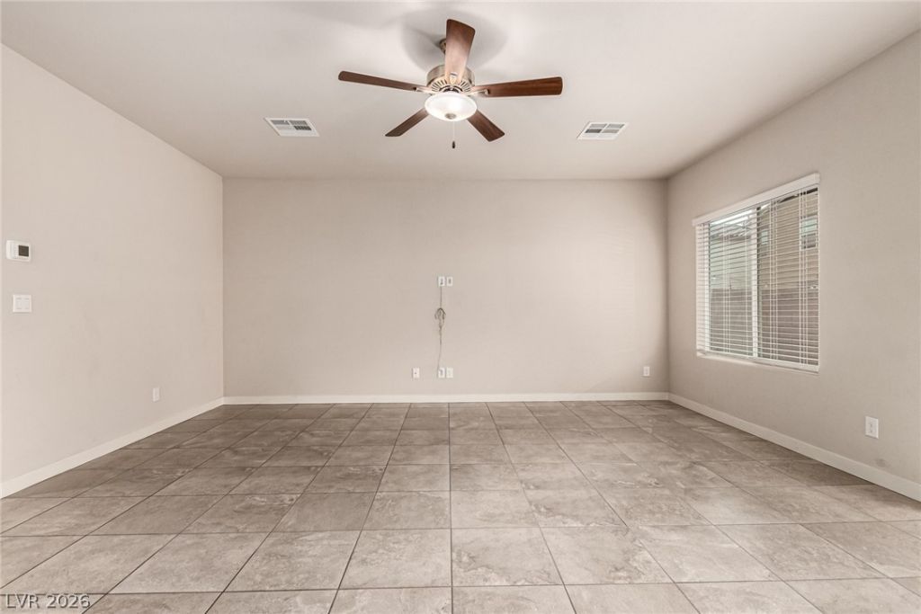 Welcome to this nearly new 5-bedroom home in a gated community, ideally located between Nellis Air Force Base and Creech Air Force Base, just minutes from Aliante Hotel & Casino, shopping, dining, and freeway access. The open first floor is designed for entertaining and features tile flooring throughout the main living areas. The kitchen is a standout with granite countertops, stainless steel appliances, upgraded cabinetry, and a custom backsplash, flowing seamlessly into the living and dining spaces. A bedroom and full bathroom downstairs provide flexibility for guests or multigenerational living. Upstairs, you'll find spacious secondary bedrooms and a private primary suite complete with a walk-in closet, dual sinks, and a large spa-like shower. Step outside to a low-maintenance backyard featuring a covered patio and turf, perfect for year-round enjoyment with minimal upkeep. This home offers modern finishes and a functional layout!