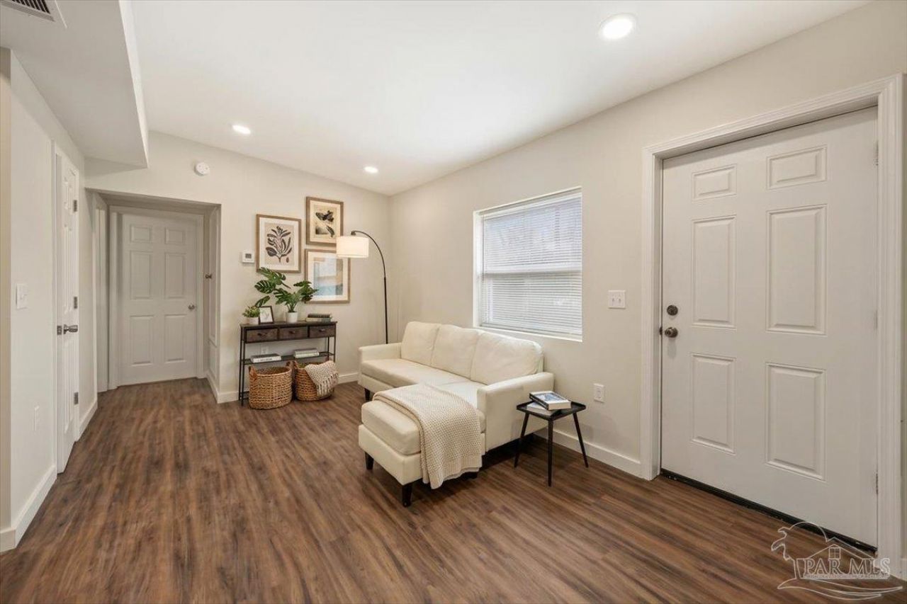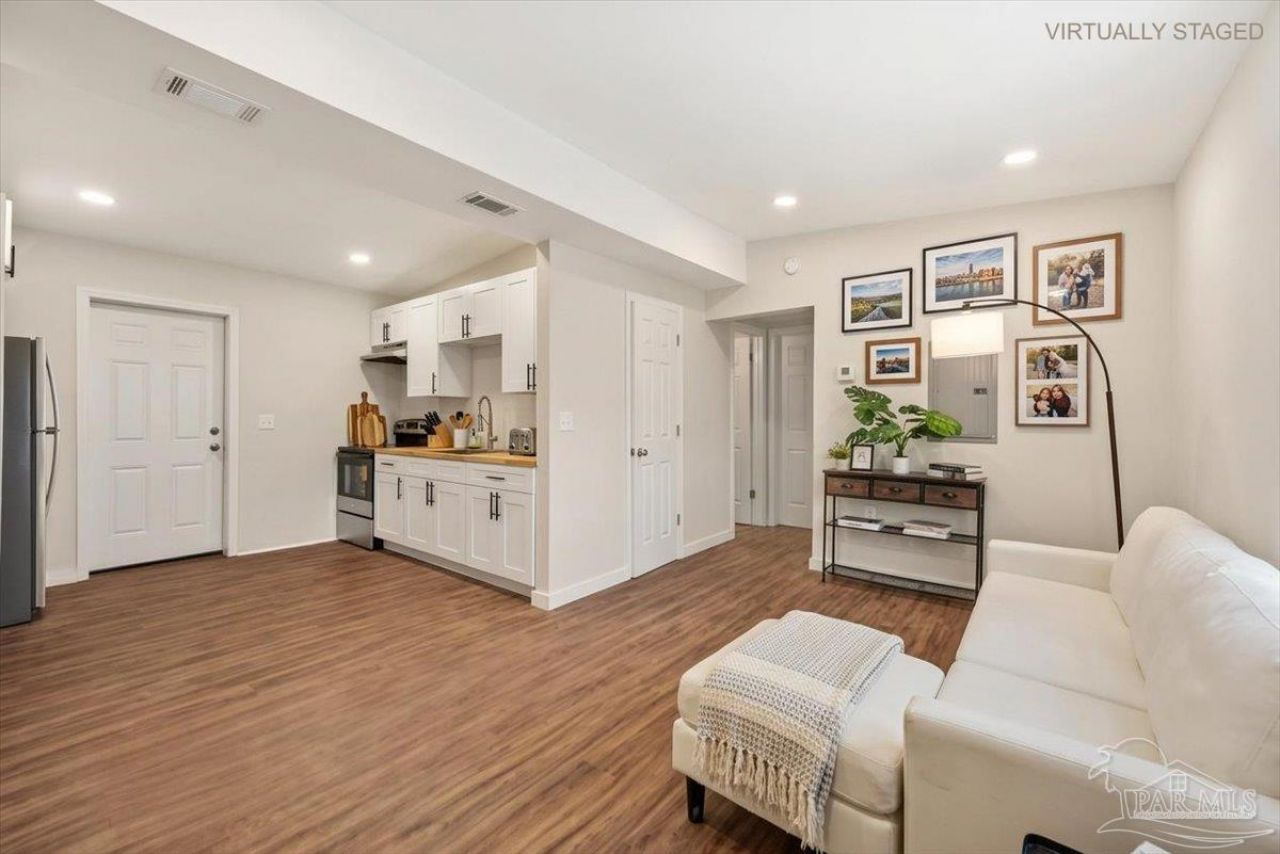SELLER will provide a concession for closing costs. Fully remodeled 3 bedroom 1 bath home on a large lot with major updates already completed. This home offers affordable ownership without the typical repair costs. The big ticket items are already done. Brand new HVAC. Brand new hot water heater. New electrical. New plumbing. New windows and doors with hurricane protection that can help lower insurance costs. Durable metal roof for long term peace of mind. Inside you will find modern finishes including butcher block counters and a tile shower. The home feels clean, updated, and move in ready. Large lot with privacy in the front and back yard. A park across the street and easy access to I-10 for those who need to commute to downtown or even Mobile. This home is perfect for your family! With no expenses spared, this is an easy decision--move in by the end of the month!