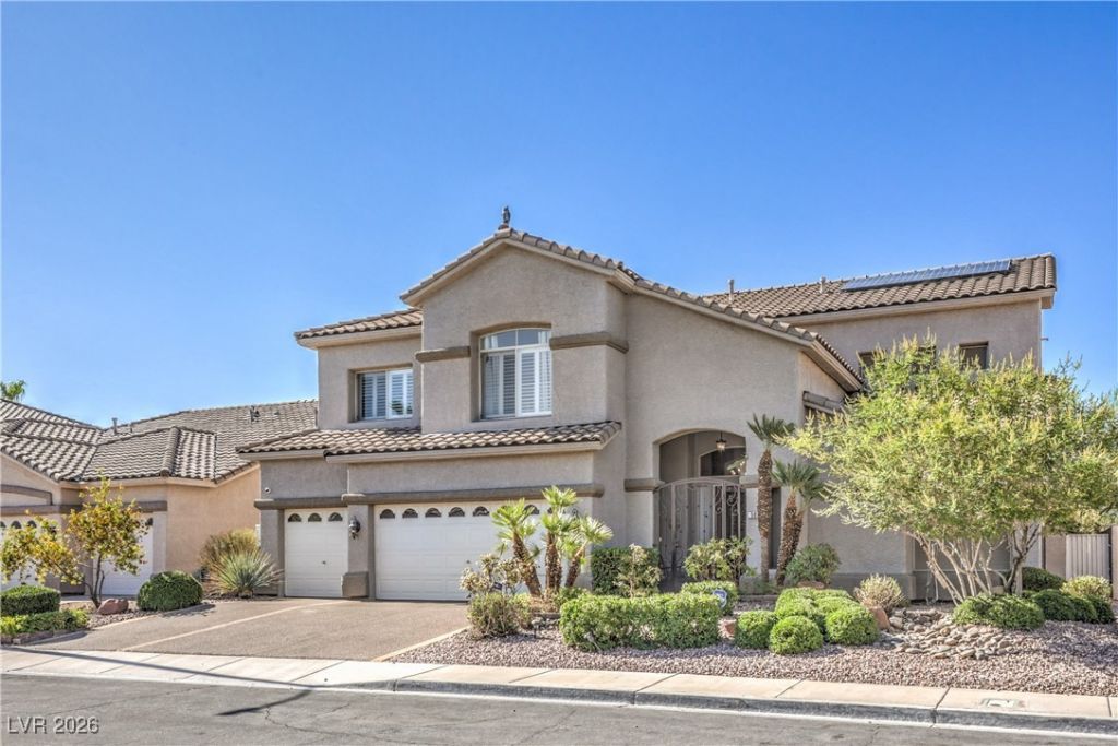 Meticulously maintained 5-bed, 3-bath original-owner home in prime Green Valley with no rear neighbors! This 3,311 sq ft 2-story features vaulted ceilings, crown molding, real oakwood floors, oversized tile, & custom iron/stone accents. Formal living/dining, plantation shutters, & a spacious kitchen with granite counters, SS appliances, island, double oven, dining nook, & built-in desk. Downstairs bedroom w/ full bath nearby?ideal for guests or office. Oversized primary suite offers dual walk-in closets, his/hers vanities, and private covered patio. Entertainer's dream backyard with pool/spa combo, built-in BBQ, covered patio, modern landscaping, and pebble tech in front and rear. Custom iron gate and front door, large laundry room with sink/storage, and 3-car garage. Timeless charm, upgrades, and a resort-style feel?this Green Valley gem has it all!