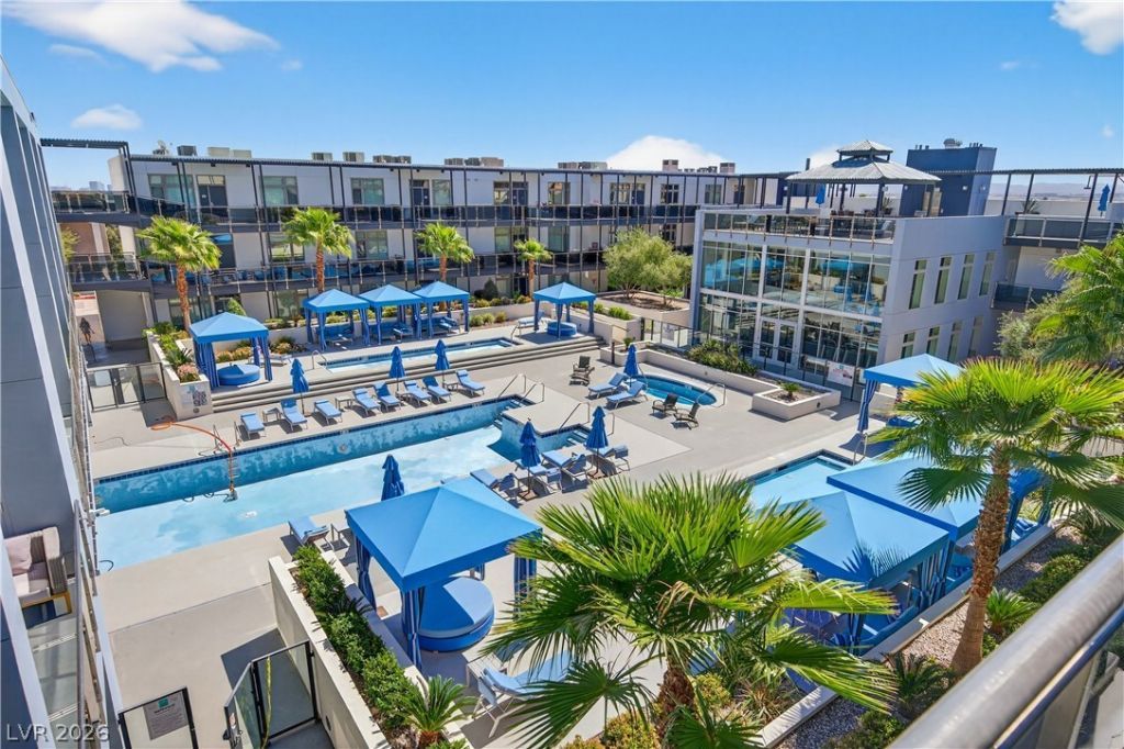 Experience elevated living in this modern mid-rise residence featuring a 24-hour manned, secured entrance?ideal as a lock-and-leave second home. Perfectly positioned just minutes from the Las Vegas Strip, this unit offers stunning mountain views from both the interior and private balcony. Inside, enjoy new stainless steel appliances, automated solar shades, and tinted windows for comfort and efficiency. Residents have access to resort-style amenities including a sparkling pool, state-of-the-art fitness center, and a covered rooftop outdoor kitchen perfect for entertaining. Complete with two assigned parking spaces in a secured garage, this home blends convenience, security, and luxury in one exceptional offering. Click on Virtual Tour for full video walkthrough.