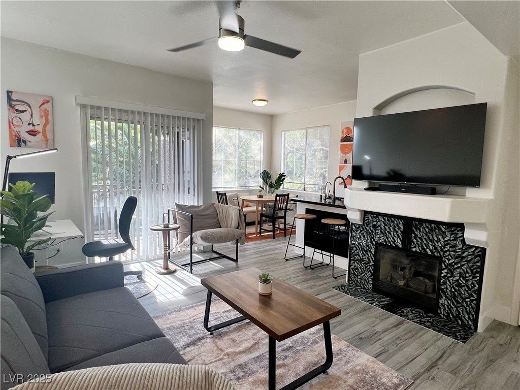 Fully furnished and upgraded two bedroom, two bathroom condo in The Falls at Rhodes Ranch community. This gorgeous gated community features a fitness center, three pools, and clubhouse. Upgraded stainless steel appliances, manmade wood floors throughout, beautiful full kitchen, and private patio for your enjoyment. Fantastic location near shopping, restaurants, Durango Casino, and more!